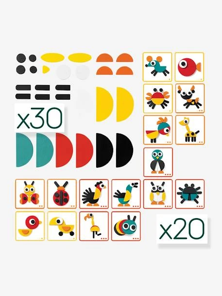 - 20 cartes modèle animaux et 3 niveaux de difficulté signalés par des étoiles.