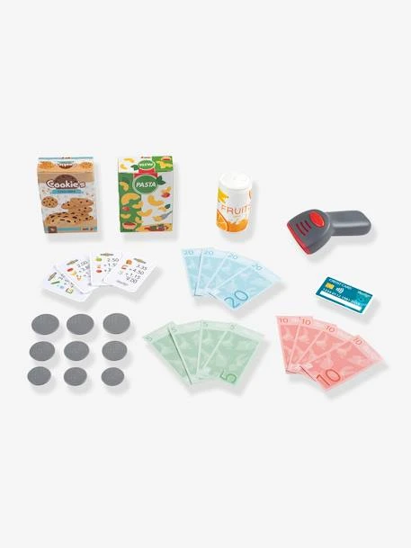 - 30 accessoires sont inclus pour agrémenter les fonctions de jeu : 1 scanner son et lumière, 1 cannette de jus de pomme, 2 boites factices (cookies/pâtes), 4 tickets de caisse, 12 billets, 9 pièces et 1 carte bancaire.