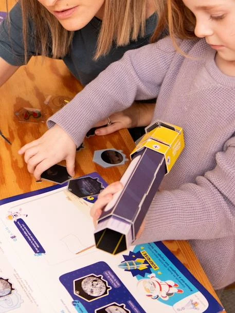 Découvre les phases de la Lune, sa géographie, pourquoi elle est la meilleure amie de la Terre, et comment les Hommes l’ont observées puis visitée ! Construis ta première lunette astronomique ! Cette activité peut-être réalisée en famille comme en totale autonomie pour l’enfant, à travers la créativité, le partage d’une expérience privilégiée et l’amusement de chacun. Ce que va apprendre l’enfant : qu’est-ce que la Lune ? De quoi est-elle composée ? Pourquoi elle “brille” ? Quelle relation à la Terre ? Les phases de Lune ? À travers nos kits, explorer la créativité et la curiosité de votre enfant ainsi que son autonomie à travers la réalisation de son activité !