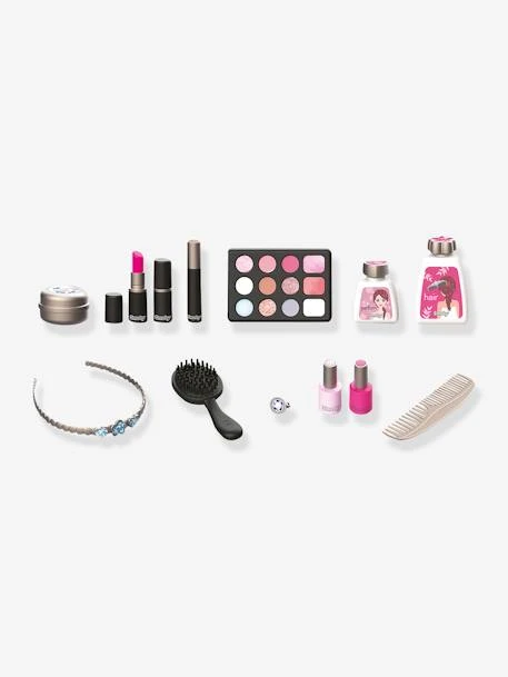 Les 13 accessoires inclus sont de parfaites répliques et promettent des heures de jeu : 2 vernis, 2 rouges à lèvres, 1 palette de fards à paupières, 1 mascara, 1 brosse, 1 peigne, 1 serre-tête, 1 bague, et différents flacons.