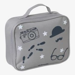 Il est habillé d’un pyjama et coiffé d’un bonnet assorti.