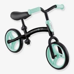 – A partir de 15 mois et jusqu’à 15 kg : les jambes et les bras ont grandi : les mains du tout-petit sur le guidon et ses pieds sur les pédales… en avant pour l’apprentissage, papa ou maman veille à la bonne trajectoire de conduite