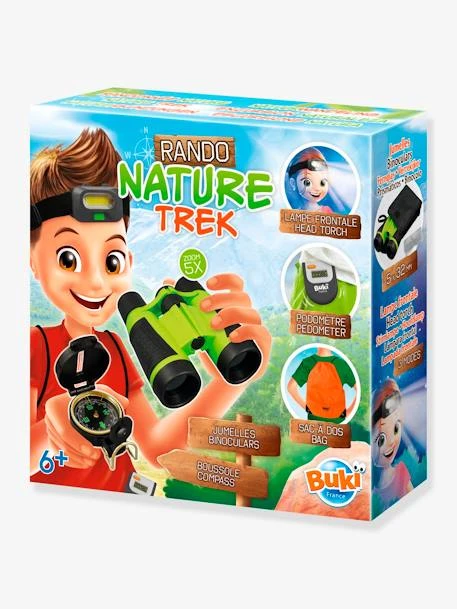 Ce coffret Randonnée Nature propose l’équipement nécessaire pour réussir ses premières randonnées : une paire de jumelles, une loupe, une lampe à énergie dynamo pour observer la nature de près et une boussole pour s’orienter.