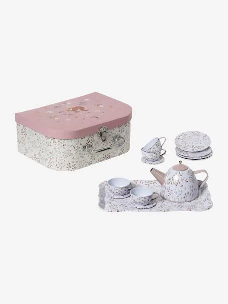 Set de thé en métal, mallette en carton et métal